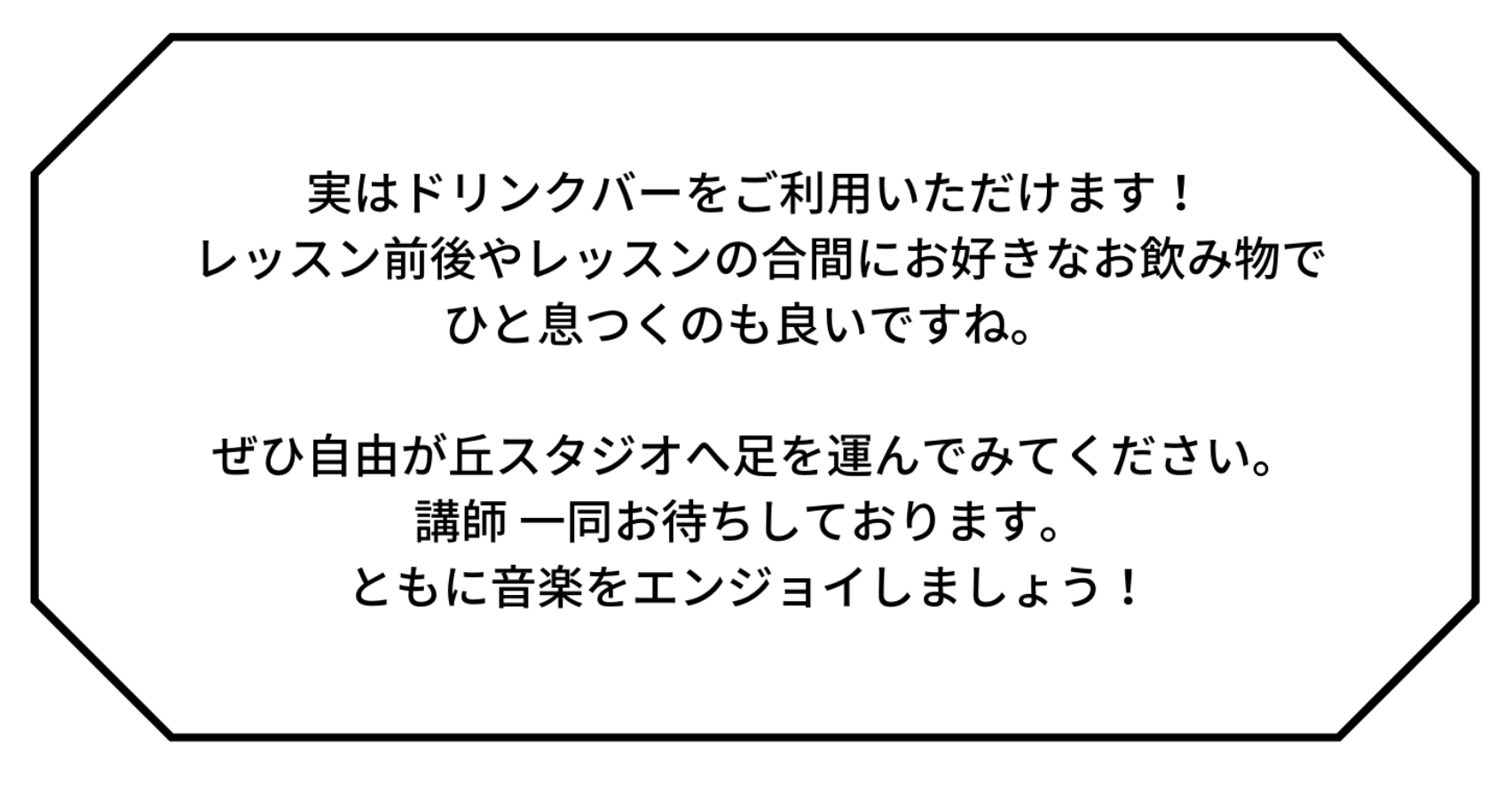 ドラム以外の楽器の場合、レッスン前後にカラオケスタジオをご予約いただきますと、個人練習をしていただけますのでご自宅でなかなか音が出せない、レッスンの予習・復習をしたいという方にもおすすめです。