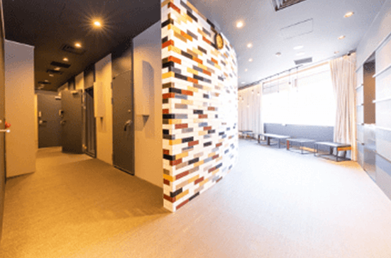 エレベーターを降りると現れる落ち着いた雰囲気のラウンジは、レッスンまでのお時間をゆったりお過ごし頂ける空間に。