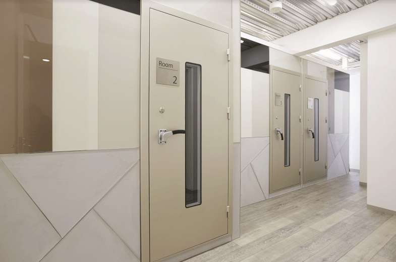 ドアは全て防音となっており、中のレッスン風景をチラっと見ることが出来ます。