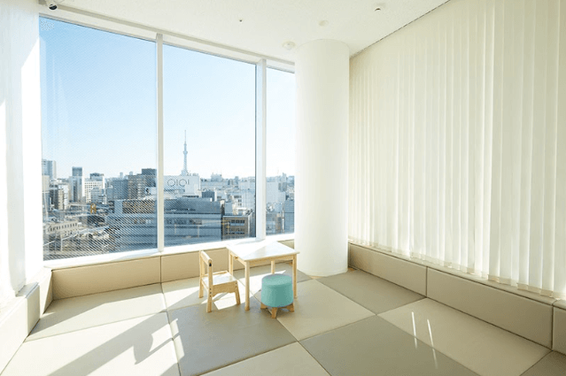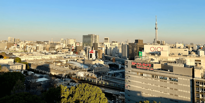 スカイツリー、上野駅のたくさんの電車なども見えたりする大きな窓は、子供だけでなく大人までわくわくするような景色です♪