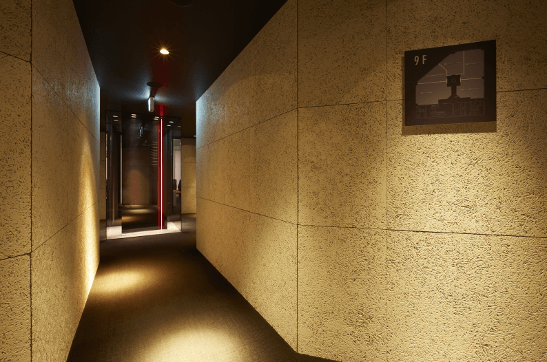 初めての方は少しびっくりされるかもしれませんが、通路をお進み頂ければ、すぐに白を基調とした広いラウンジに到着しますので、どうぞご安心下さい。